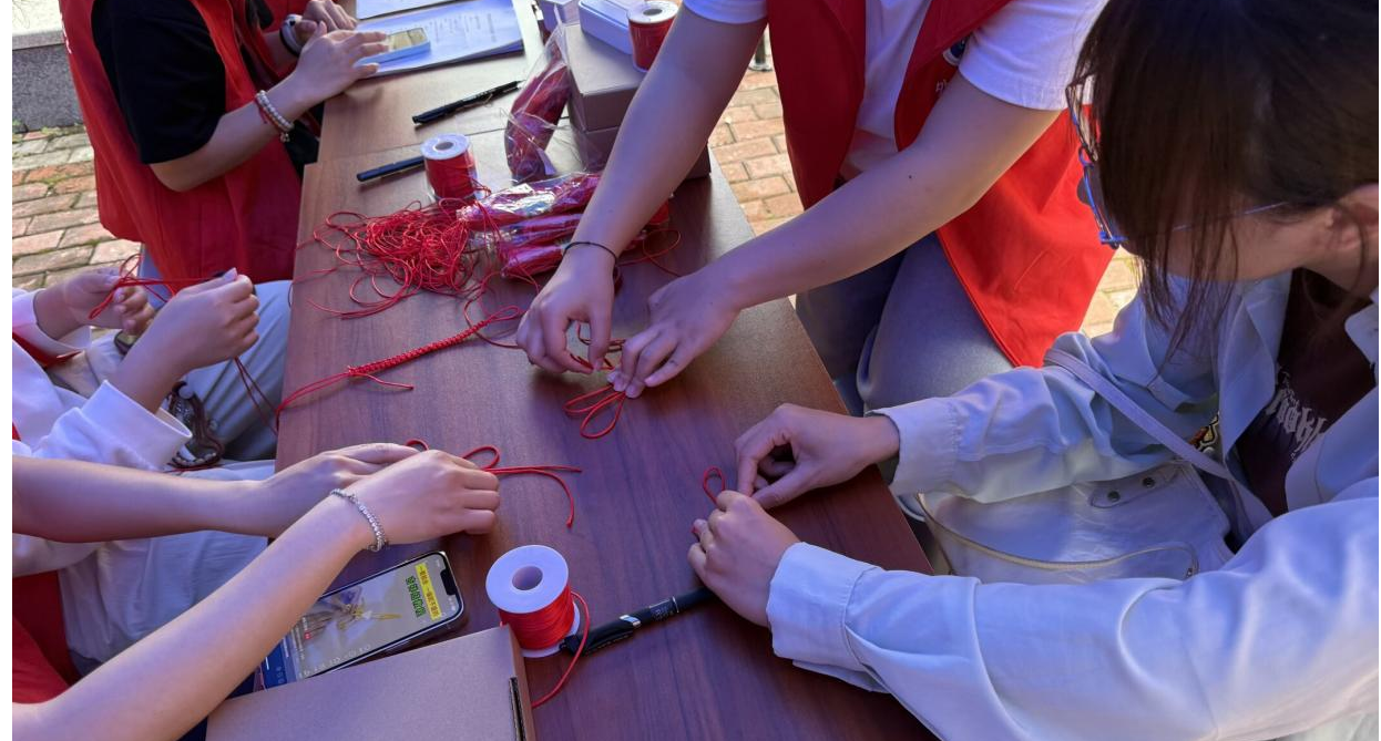 在编中国结手工体验区,志愿者们耐心指导同学们穿绳、打结、造型,手把手传授中国结的编织技巧。一个个精致的中国结逐渐成型,既承载着中华优秀统文化的底蕴,也象征着同学们团结互助、心手相连的美好心愿。