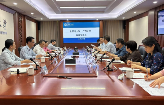 双方初步达成共建智慧课程、区域国别学硕点建设等合作意向,广西大学有关部门负责人参加座谈会,北部湾大学外国语学院领导教师陪同调研交流。