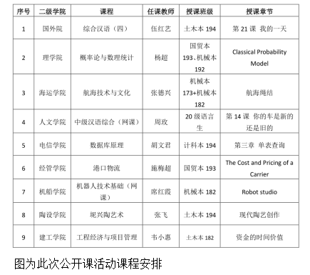为提高留学生课程教学质量,为各二级学院留学生任课教师提供教学交流平台和课程展示机会,促进各学院、各专业之间的教学方法、教学理念交流,共享教学资源,由国交处、国外院中外语言文化教育教研室负责组织的2021春留学生课程公开课活动于2021年4月20日—5月7日(第8-10周)进行,共有来自9个学院的9位老师进行了公开课授课。本次公开课有实体课和网课两种形式,分为两部分:讲课+评课。讲课以一节课(45 分钟)为时长单位,评课时长也为一节课,在讲课结束后立即进行。授课教师介绍课程的教学设计,之后由听课人员进行评课,评课含听课感受、教学建议、对留学生课程公开课的组织建议等。