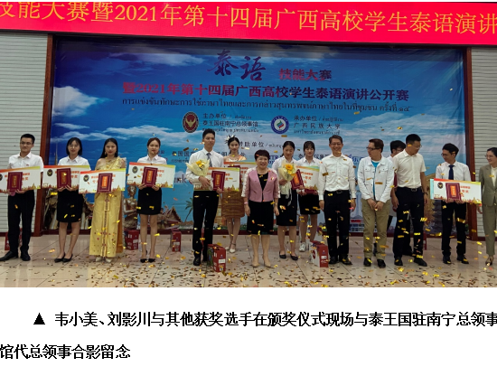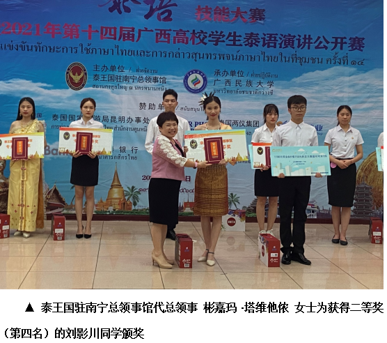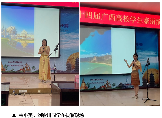 2021年6月19日,由泰王国驻南宁总领事馆主办、广西民族大学承办的“泰语技能大赛暨2021年第十四届广西高校大学生泰语演讲公开赛”在广西民族大学举行,比赛分为专业组和非专业组,来自全区20所高校的68名选手参加了比赛。我院泰语本181班韦小美、泰语本191班刘影川两位同学代表学校参加了专业组比赛。