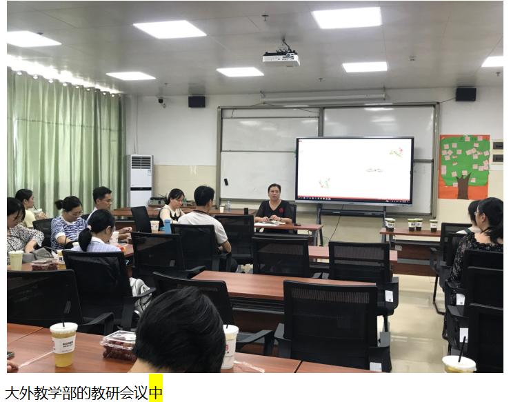 9月9日下午,大学外语教学部郭杏主任主持了学期的第一次教研活动,潘景丽副院长及全体大学英语教师参与了活动。潘景丽副院长就一流课程建设、培育教学成果奖、教学改革等议题进行了指导,并对老师们给予鼓励和期许。接着,张媛飞、陈娜两位老师分享了他们教学成果奖申报的经验和收获。最后,郭杏主任对新学期的教学活动,尤其是分级班教学的集体备课做了布置。会议后,老师们按照各自的备课小组开展了集体备课活动。