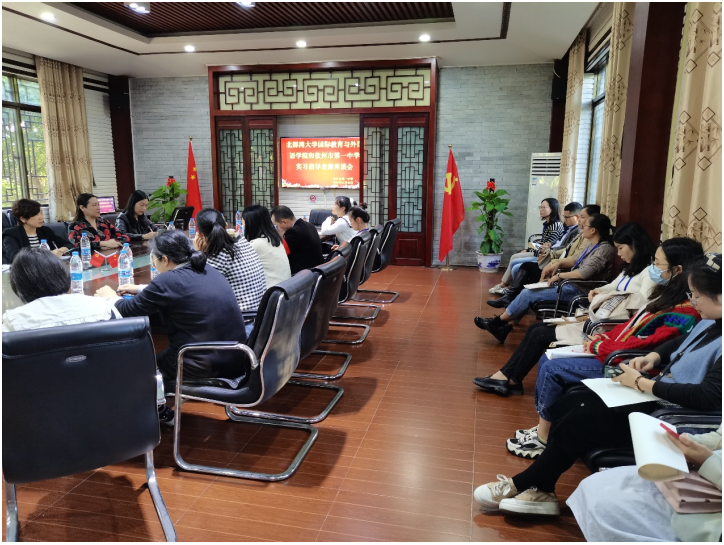 11月30日下午, 我院潘景丽副院长、英语专业教研室黄伟主任、蒙宏洁副教授及何超群老师到钦州第一中学看望实习生并与一中的实习指导教师进行座谈。