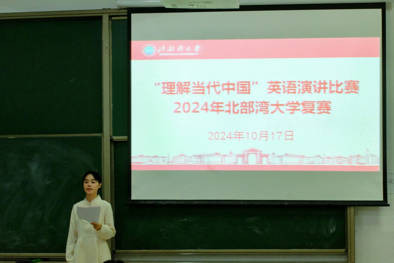 为了提高学生的外语表达能力, 拓宽国际视野,培养学生们的综合素质。2024年10月17日晚,我校在11-211成功举办了一场精彩纷呈的“理解当代中国”演讲比赛。出席本次活动的有容剑玲、王碧海、黄伟、覃正金老师作为本次比赛评委。经过激烈的角逐,优秀学子们脱颖而出,展现了我校学子的风采。