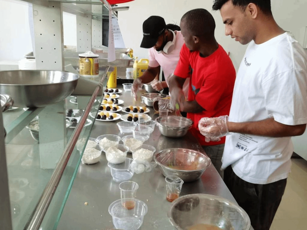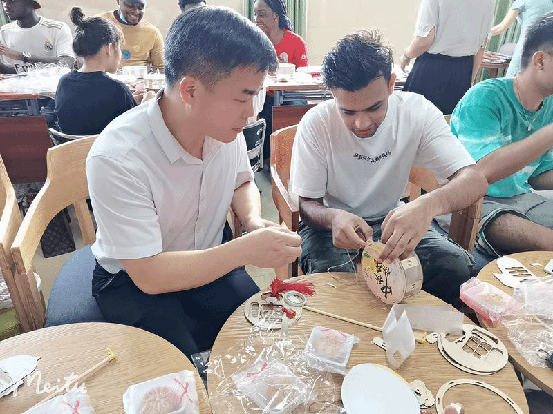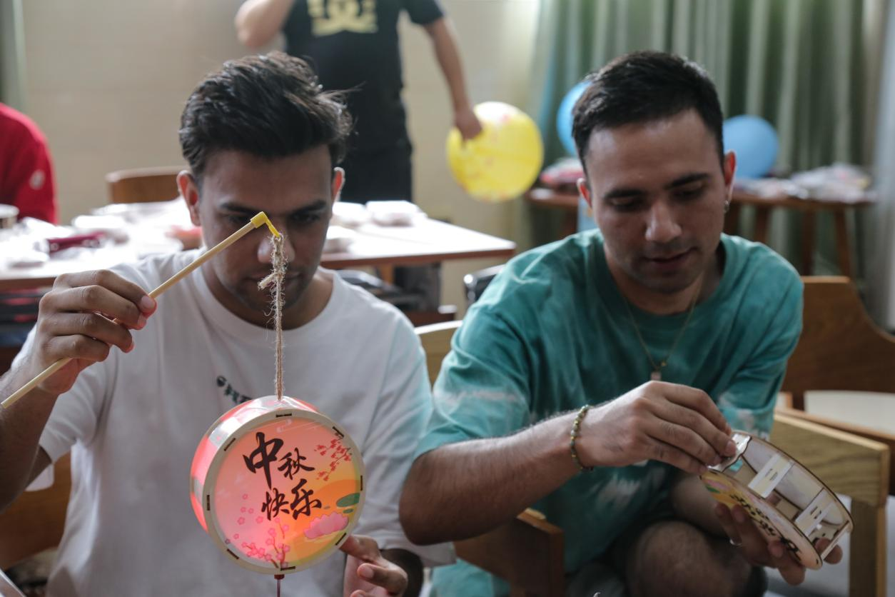 参与的成员有:校院领导、留学生科全体教师、国际交流协会代表、国际学生代表等。上午10:00,成员们在食品学院实验室7A-419体验制作月饼的过程;下午15:00,成员们集中在国外院114一起制作彩绘灯笼、花灯和品尝自己亲手做的月饼,欣赏宋代诗人苏轼的《水调歌头》。