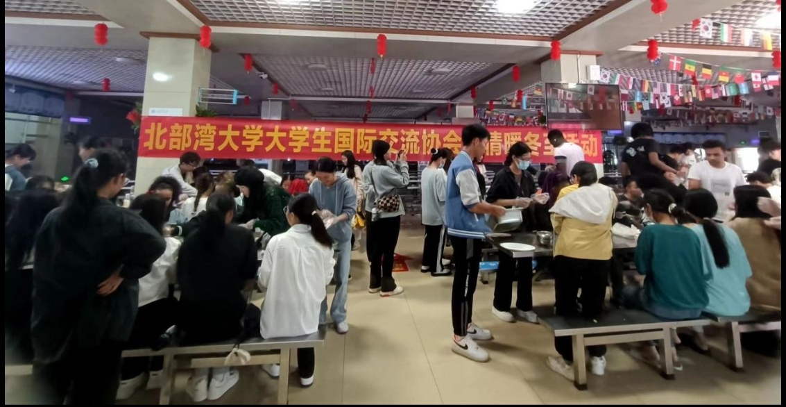 2022年11月27日,由国际教育与外国语学院国际交流协会举办的“浓情暖冬冬至活动”在北部湾大学西区食堂及大学生活动中心顺利举办,参加本次活动的有国际交流协会的成员、指导老师和在校中外学生们。