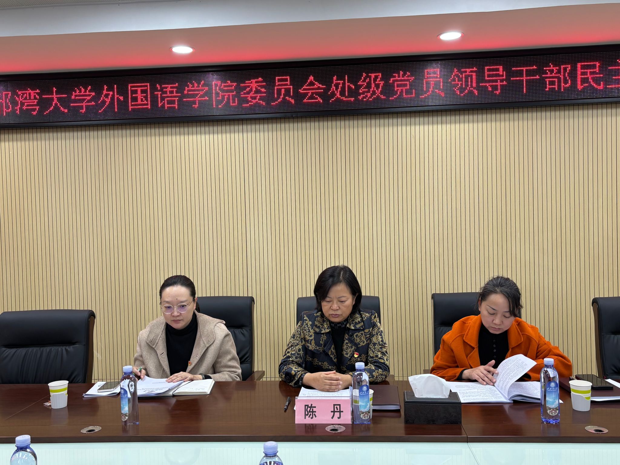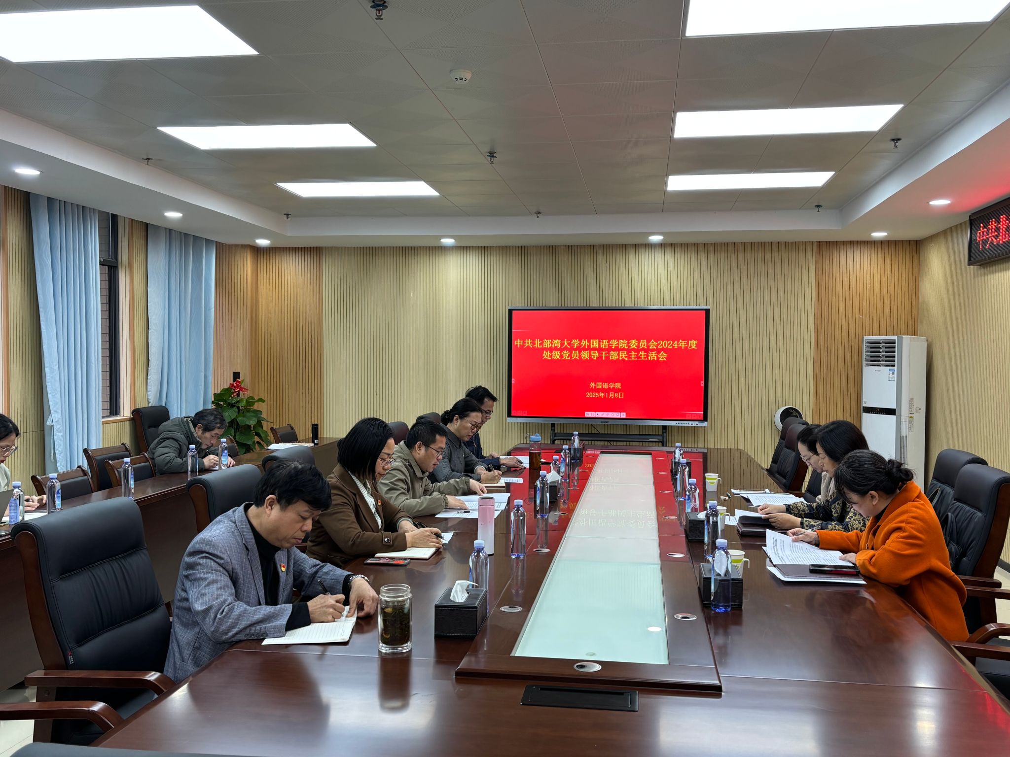 2025年1月8日,外国语学院2024年度处级党员领导干部民主生活会在501会议室召开,学校党委常委、副校长陈丹莅临学院督导,学院全体领导班子、组织员、各支部书记等相关人员参加会议。学院党委书记潘文昊主持民主生活会。