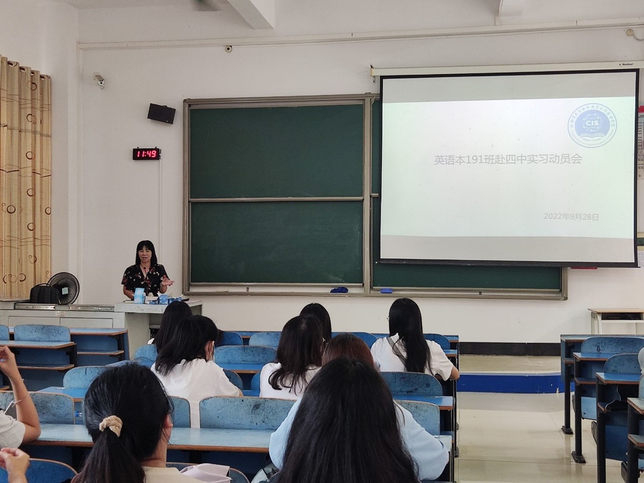 为了帮助同学们调整好状态去更好地迎接实习工作,我院英语本191班在9月28日上午于11-105召开实习动员会,带队教师唐万珊老师及英语本191班参加实习的全体同学参加动员会。
