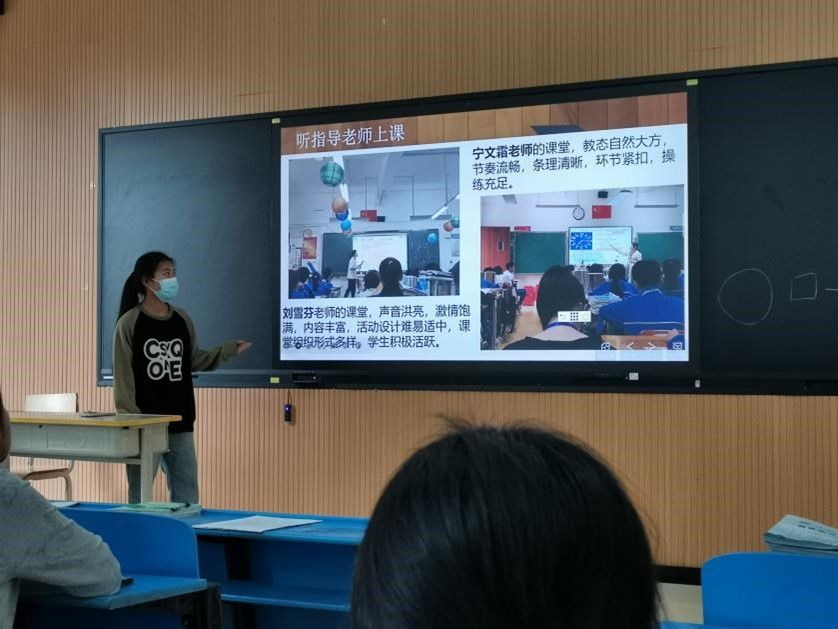 此次大会上,董秀萍、曾馨慧、王天喜和黄依雯四位学生代表分别从教学工作、班主任工作、教研活动和生活剪影四大方面汇报了此次实习成果。同学们表示,此次教育实习让他们对中学英语实际教学情况有了更深入的了解,进一步培养了他们分析、解决问题的能力,受益匪浅。