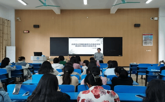 2023年10月至12月,国际教育与外国语学院英语本201、202班共52名学生在何超群、蒙宏洁、韦敏和唐万珊四位老师的带领下,前往钦州市第一中学龙岗校区开展了为期两个月的教育实习活动。2023年12月11日,何超群老师在12-106教室主持了实习总结大会,英语本201、202班同学参加大会,为此次实习画上了圆满的句号。