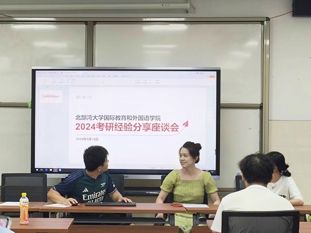 5月14日下午,我院在国际交流中心108教室召开了2024届英语考研经验分享会。此次分享会邀请了今年考研成功的罗智丹学姐、李凯丽学姐以及郭泽川学长来分享考研心得。英语教研室副主任覃正金老师主持本次分享会,英语专业教师陈柔、辅导员黄树海老师参加本次分享会。