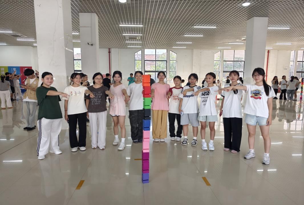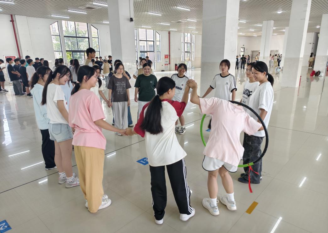 活动在学校心理健康工作站工作人员的带领下展开。开场热身游戏“桃花朵朵开”迅速点燃了全场热情,欢声笑语中,陌生的隔阂瞬间消融。随后的“圈动人心”极大地激发了团队的创新与策略执行能力,让同学们在实践中体会到集体智慧的优势;而“珠行万里”则对团队的默契与协作提出了更高要求。最终,“合力筑塔”环节将现场气氛推向高潮,充分考验了团队的耐心与配合。
