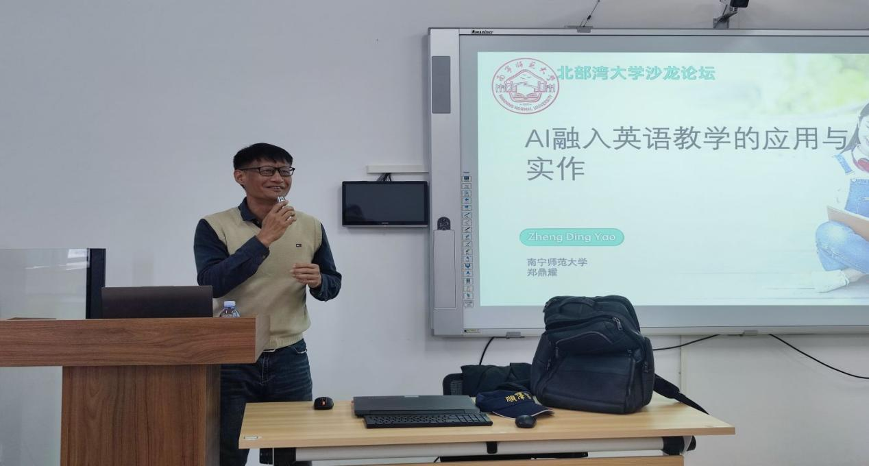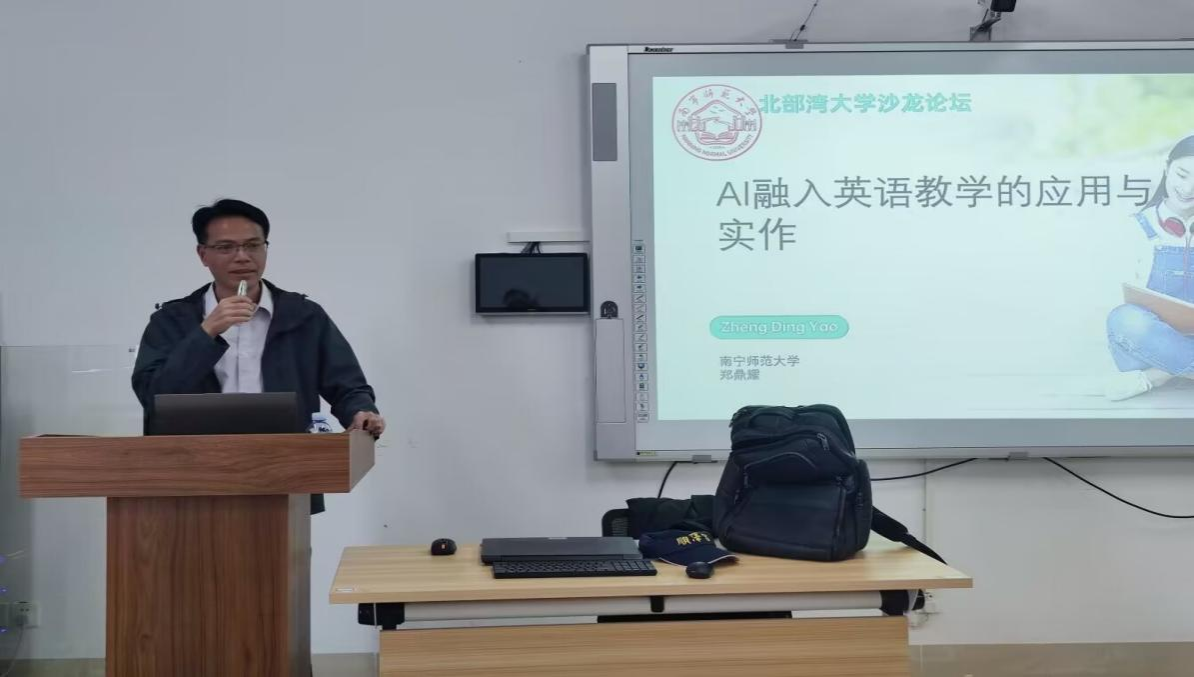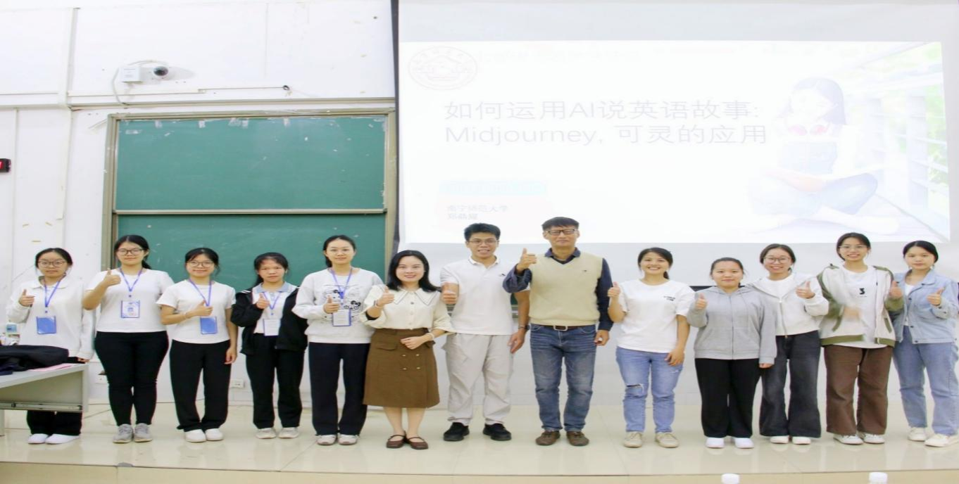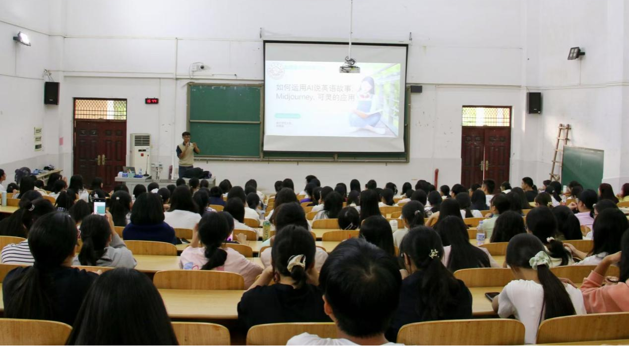 为了进一步推进数字技术融入课堂,提升英语师范生的信息化素养及AI教学能力,郑鼎耀教授在下午于12号教学楼205教室,为英语师范生举办了一场题为“如何运用AI说英语故事:Midjourney,可灵的应用”的专题学术讲座。英语教研室主任蒙松子、副主任覃正金出席了本次活动并发表了讲话。 在讲座中,郑教授首先概述了AI技术在教育领域的发展现状,并深入剖析了其对英语教学的巨大潜力。他通过一系列生动的案例,展示了AI技术在绘画、头像制作等领域的具体应用,以及如何利用AI技术生成富含人生哲理的寓言故事,为英语课堂增添趣味性的实践探索。这些案例和实践探索让在场的学生深受启发。 此外,郑教授还就AI技术衍生的相关问题进行了深入的探讨,并展望了随着技术的不断发展和完善,这些问题将逐步得到解决。