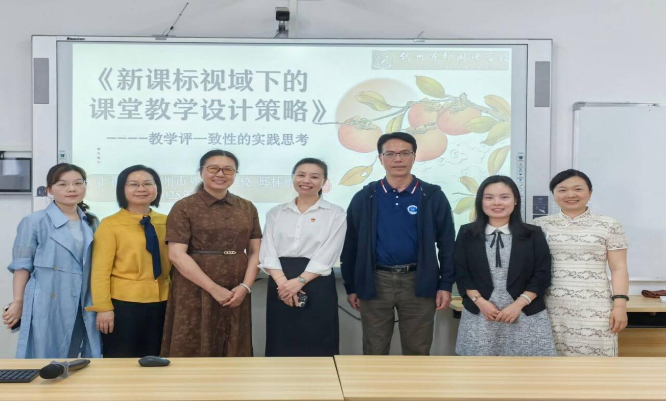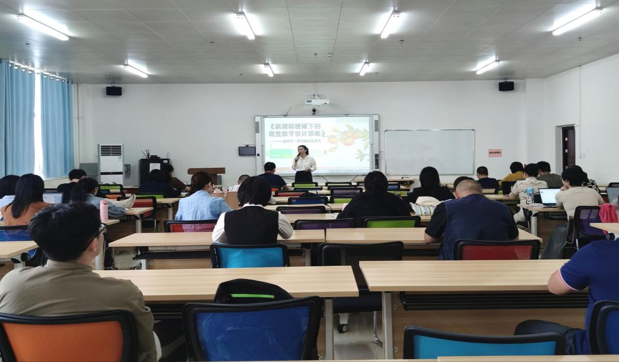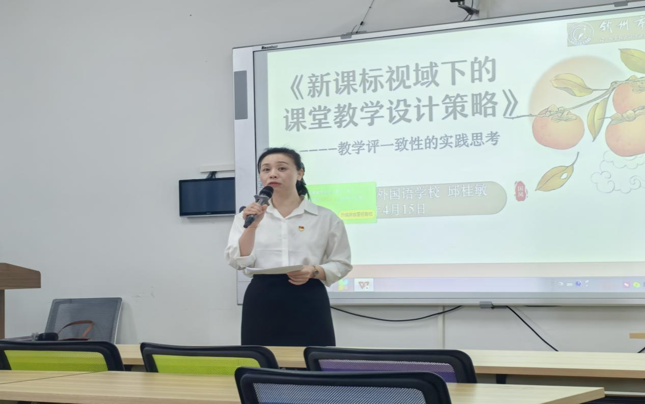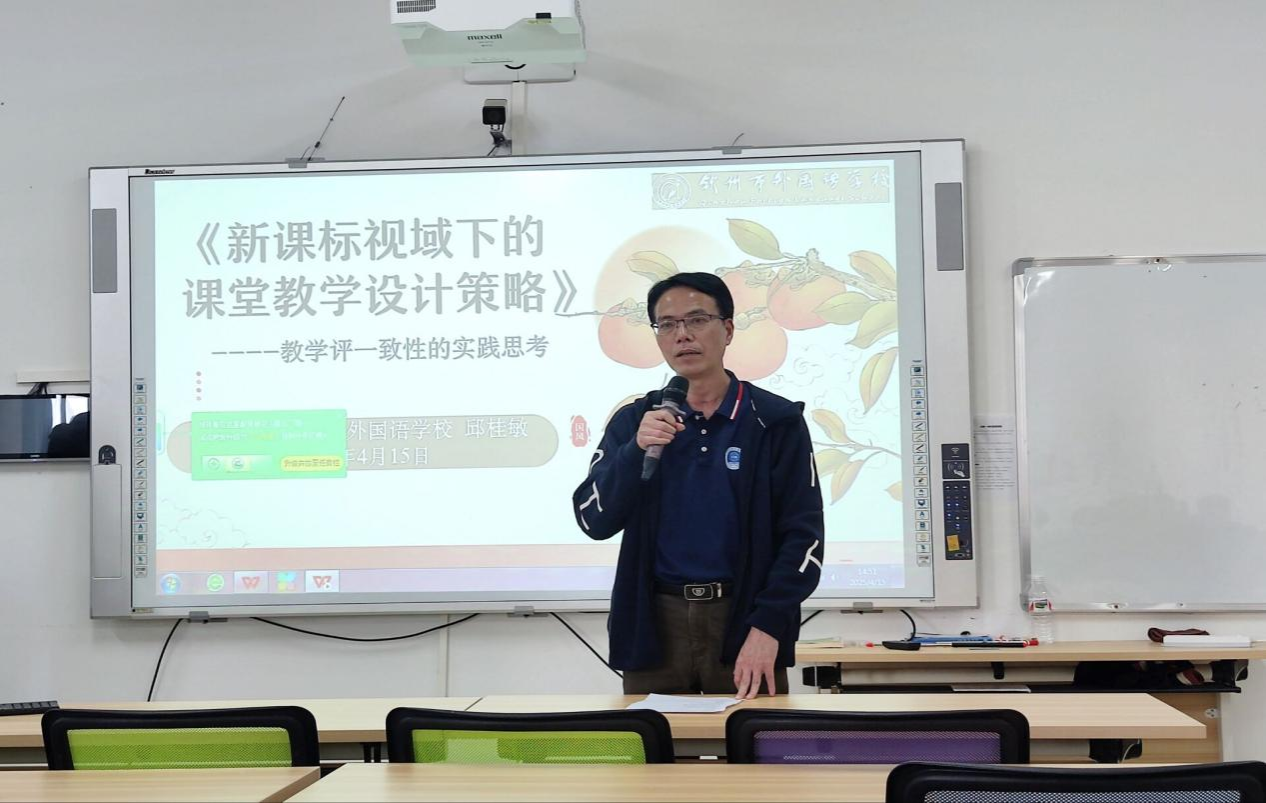 4月15日下午,钦州市外国语学校中学英语高级教师邱桂敏应邀来我院大创楼406教室作"新课标视域下的课堂教学设计策略——教学评一致性的实践思考"专题学术讲座。学院党委书记潘文昊、院长冯丽及全体教师参加学习。讲座由蔡成龙副院长主持,讲座聚焦"教学评一体化"实践路径,通过理论阐释、案例分析、互动研讨等形式,为新课标背景下的英语教学改革提供新思路。