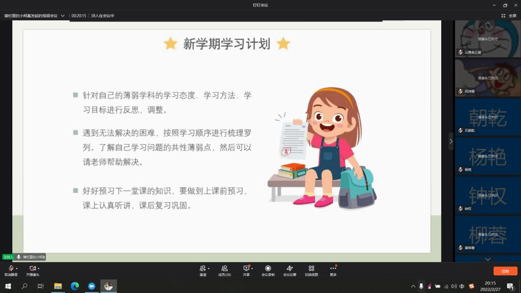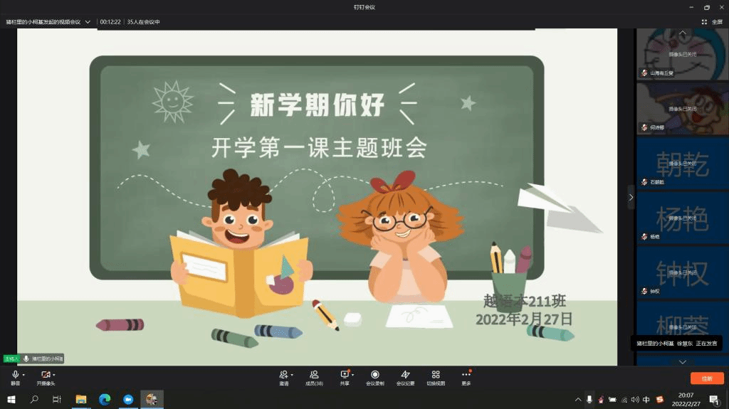 为了确保学生返校工作的顺利进行,让同学们在新的学期更好地学习和生活,越语本211于2022年2月27日通过钉钉会议开展了开学第一课主题班会。本次会议分为四项内容:返校安全教育;疫情防护知识;网课纪律声明;新学期学习计划相关事项。