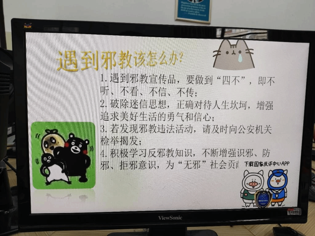 副班长郑锦美在会议上通过PPT给同学们展示了一些常见的邪教宣传方式,并告诉同学们遇到邪教时应如何行动,提醒同学们下载国家反诈中心APP等。