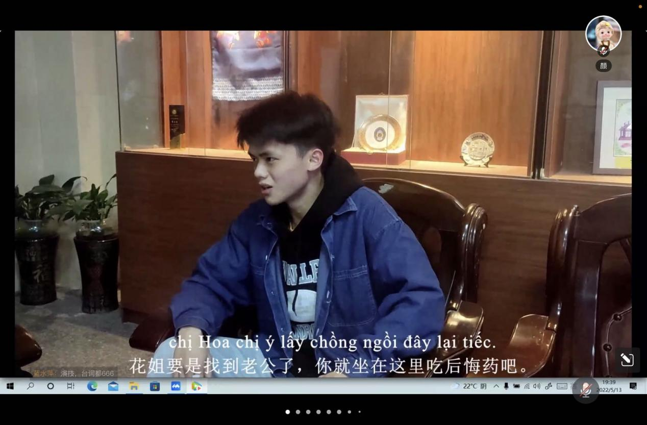 2022年5月13日晚,越南语专业2019级全体师生于腾讯会议平台开展越南语情景剧活动,本次活动由沈礼明同学主持,颜彦、蓝水萍、潘桂艳、谢旻等4位老师,以及外教阮氏维东、杜文楠老师担任本次活动的评委。