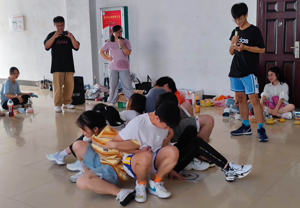 在活动中,每个人都分发到了小零食,大家边吃边玩,尽情玩耍,并进行了一些小游戏。游戏分为三项,第一项并肩起立,要求每组成员坐在地上并肩并肩围成一个圈,在不用手撑地的情况下最先完成站立的小组获胜。每个小组都尽力用最快速度起立,在周围观看的同学们的心也随着比赛进程一上一下,既拉近了同学们的距离,也将活动氛围推向高潮。第二项活动为猜猜是谁,要求每组派一位同学抽取事先准备好的名片卡,小组代表描述出卡片上这个人的特征,然后由其他人进行抢答,考验同学之间的了解程度,加深同学间的印象。小组代表幽默的描述和同学们的积极抢答使得每个人哈哈大笑,沉浸在游戏当中。第三项活动为两人三足,每组派出六名同学,两人一组将两个人的其中一只脚绑在一起进行接力赛跑,用时最短的小组获胜。这一活动极大展现出我们大学生良好的精神风貌和青春的独特魅力。