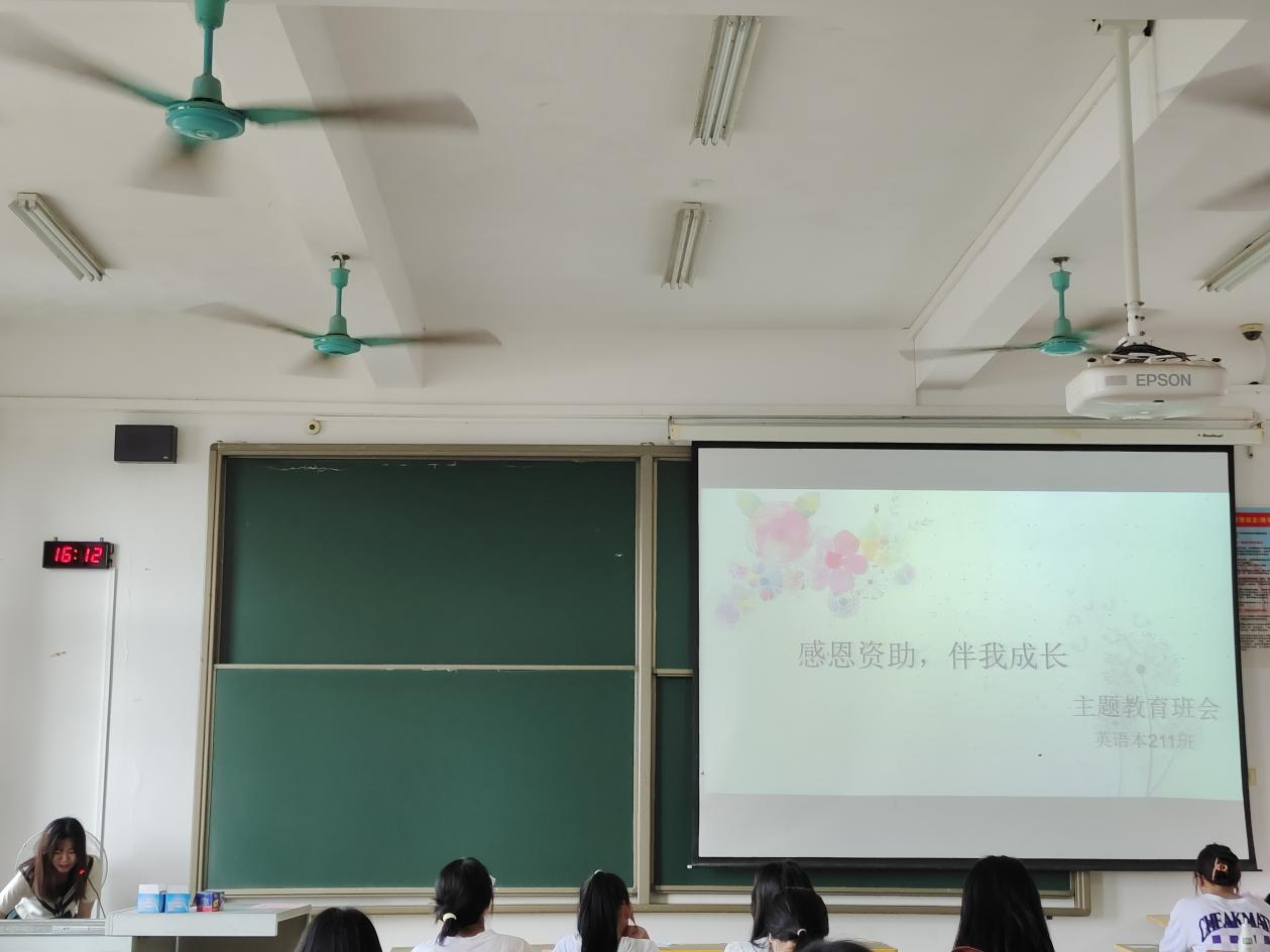 2022年6月1日星期三下午,英语本211班全体同学在12栋213教室开展了“感恩资助,伴我成长”主题班会,此次班会在资助委员黄丽艳的组织下有序进行。