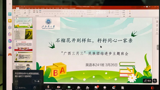 2025年3月26日晚,英语本241班成功在腾讯会议召开了三月份主题班会,此次班会聚焦假期安全教育、“广西三月三”传统文化。班会由班主任朱芷晴老师主持。
