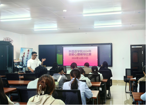 2024年10月29日下午,我院在大创507教室开展朋辈心理辅导大赛,本次比赛由辅导员黄树海,周雪洁,杨靖梅,谢思雨老师担任评委,共有6支团队18名学生报名参加。