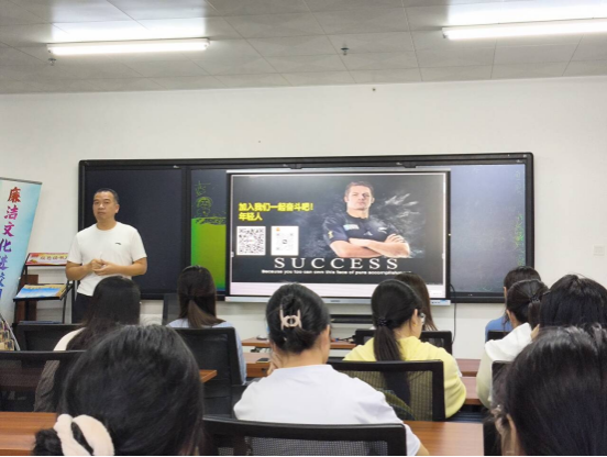 2024年11月13日,广州天生体育永平有限公司在北部湾大学大创507教室举行了一场招聘宣讲会。外国语学院党委副书记伍红艺、辅导员黄树海参与接待,越语本211班的全体学生积极参加了此次活动。