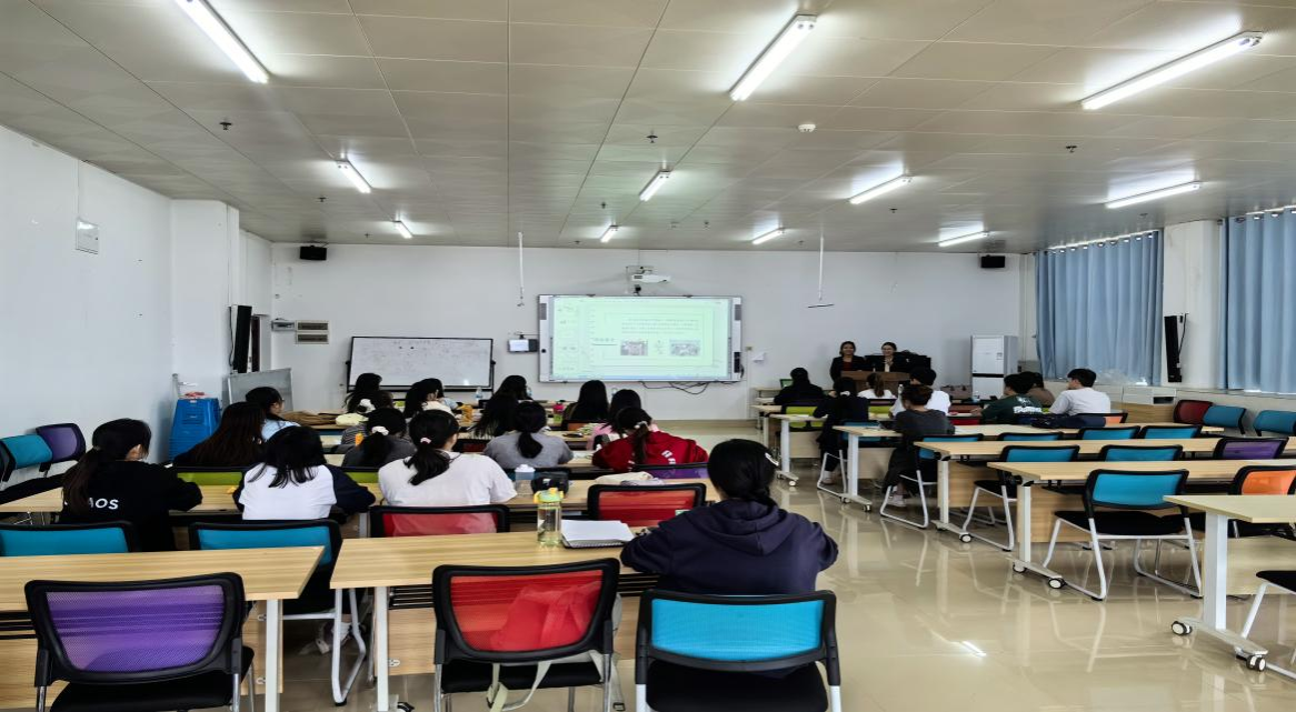宣讲会上,华人语言学校副校长苏宁以及薇薇老师围绕该学校的教学模式、教学地点和师资力量展开分享,详细介绍学校的线上线下分层课程体系、中外籍师资团队及在各大中泰高校之间的合作项目。详细分析该学校教师岗位的职责、任职要求和薪资福利。重点提及了“海外任职补贴、专业培训体系以及工作签证全程协助”等核心就业保障。通过观看教学案例和在职教师现场分享,让学生更直观地了解海外汉语教学的工作场景和发展前景。