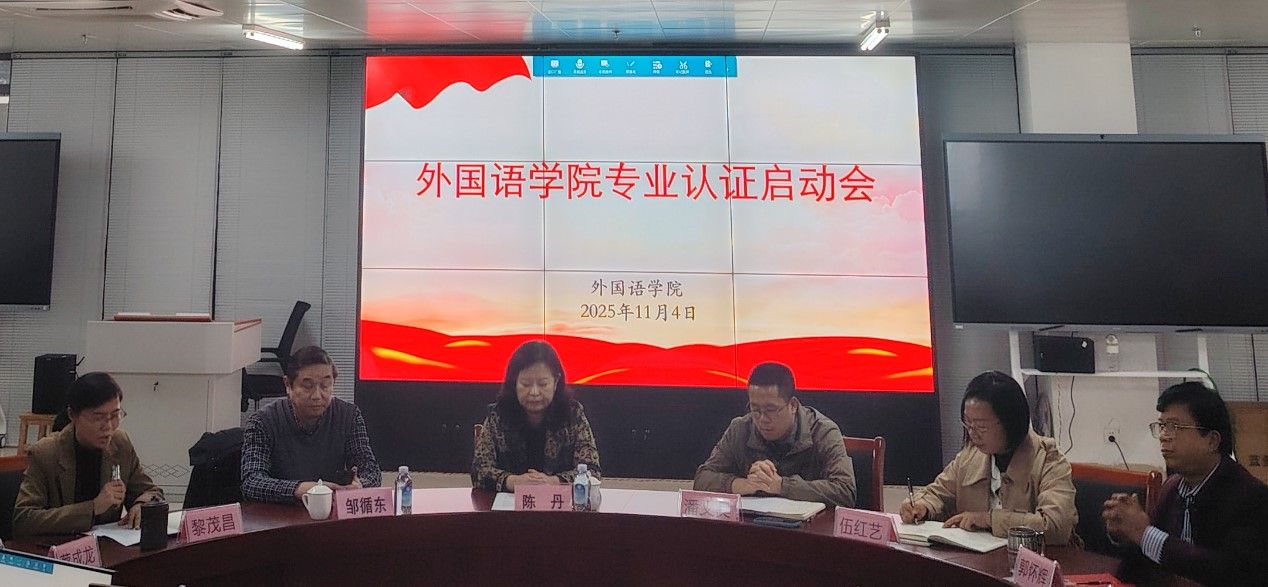 11月4日下午,学院召开英语专业认证启动会,学校党委常委、副校长陈丹,外国语学院领导班子及全体教职工参会,并邀请教育部专业认证专家邹循东教授做专题培训,会议由外国语学院党委潘文昊书记主持。
