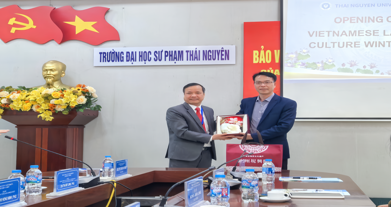 1月13日上午,本次冬令营开营仪式在越南太原师范大学举办。该校麦春长校长在致辞中表示,此次冬令营既是中越两国深厚情谊的生动延续,也是两校拓宽合作领域、深化教育交流的重要契机,必将进一步拉近双方师生的心灵距离,筑牢合作根基。我校蔡副院长发言,跨国研学为学生搭建了沉浸式语言学习与文化感知的优质平台,不仅能提升学生的跨文化沟通能力,更将为两校后续在教育教学、学术研究等方面的深度合作奠定坚实基础。开营的文艺表演环节精彩纷呈,中越学生联袂唱响《Talking to the moon》,双语演绎的《青花瓷》更是将中西合璧、中越交融的文化韵味展现得淋漓尽致,将现场气氛推向高潮。随后双方互赠纪念礼品、合影留念,为本次冬令营拉开了温馨而圆满的序幕。