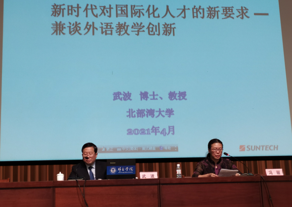 202147外交学院英语系武波教授为我院全体师生作了题为新时代对国际化人才的新要求——兼谈外语教学创新学术讲座。武波教授是首届国家教委“中英友好奖学金”获得者,主要研究中国文化西传与汉英翻译、文化史和翻译史。讲座由我院冯丽院长主持国外院全体师生及感兴趣的其他学院师生聆听了本次讲座。