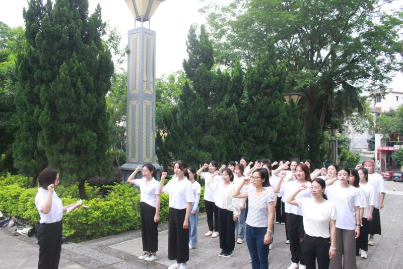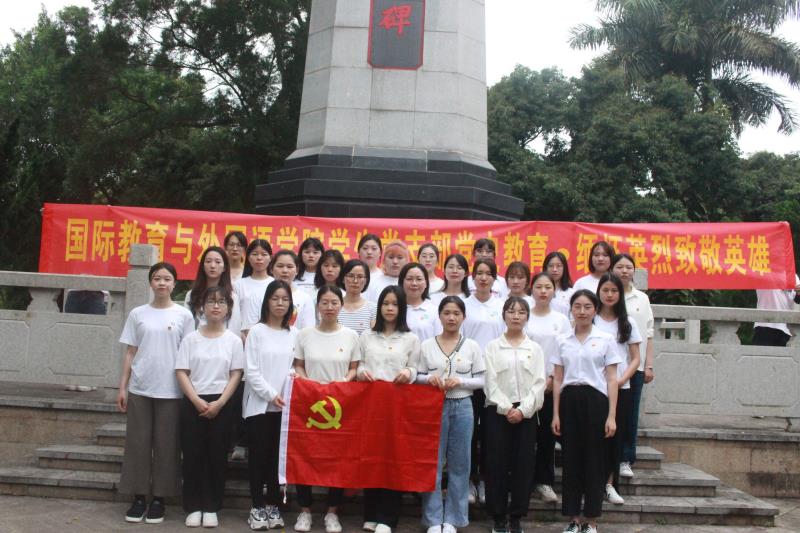 2021年4月24日下午,国际教育与外国语学院学生党支部全体党员在党总支副书记伍红艺的带领下,到钦州市中山公园革命烈士陵园开展“缅怀英烈·致敬英雄”打卡红色教育基地主题党日活动。党员们在纪念碑前祭奠革命英烈,传承弘扬英烈精神,以实际行动扎实开展党史学习教育。