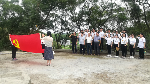 活动包括以下议程:首先全体党员在环头烈士纪念碑齐唱国歌,接着在张媛飞书记领誓下,教师党员面向鲜红的党旗,重温入党誓词,然后由梁俊崇老同志在纪念碑前给大家介绍英雄纪念碑历史和讲述当年故事,党员同志们深受感动。之后全体党员同志们默哀三分钟,追思先烈的英雄事迹,最后所有党员向革命烈士敬献鲜花,怀着崇敬的心情瞻仰纪念碑。