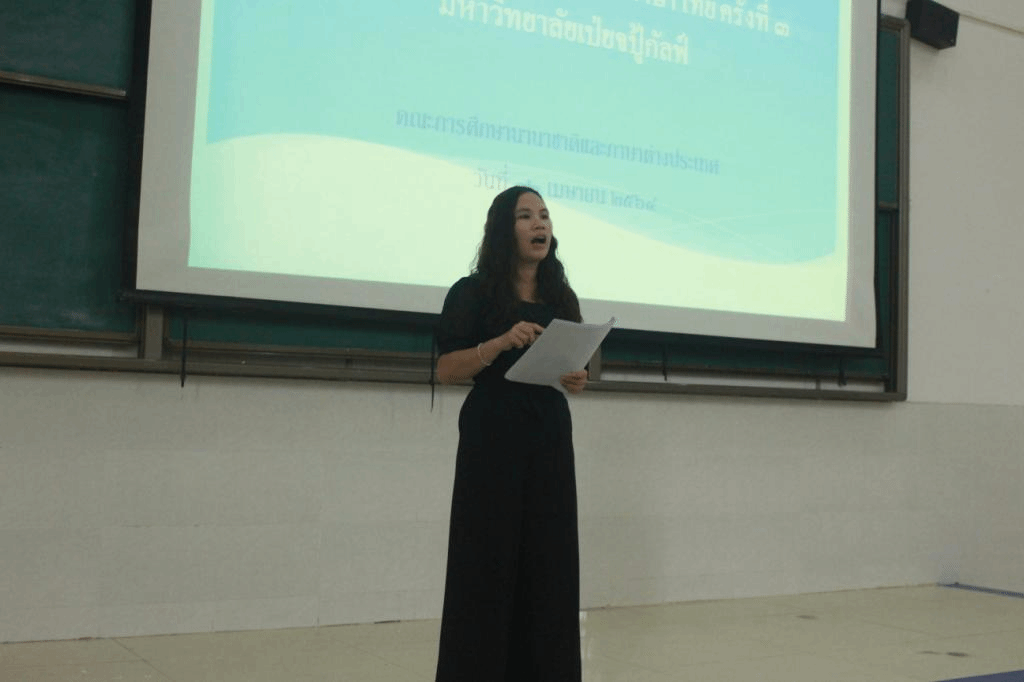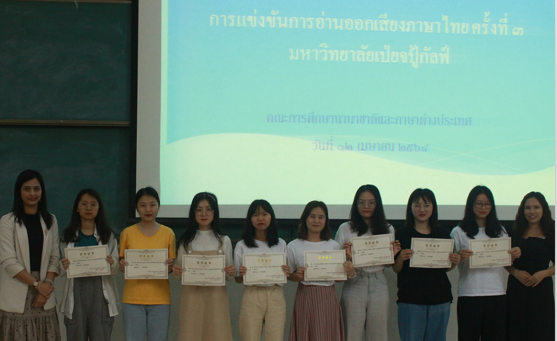 为了锻炼泰语学生的拼读能力和口头表达能力,激发同学们学习泰语的兴趣和调动积极性。2021年4月12日下午14:30—16:10,由国际教育与外国语学院泰语专业主办的北部湾大学第三届泰语朗诵大赛在11号教学楼208教室拉开序幕。出席此次朗诵大赛的评委有党雪妮老师、外教魏彩萍,参与人员为全体泰语专业学生。