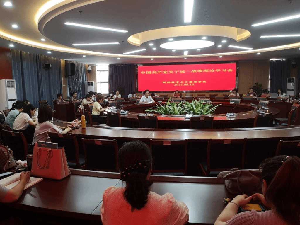 蔡老师首先带领大家共同学习了《中国共产党统一战线工作条例》文件中的相关内容,他指出,我学院民主党派人士是全校最多的,国际交流处作为学校国际交流的先头部门,各位作为国际教育与外国语学院的外语教师,条例里面提到的民族工作、宗教工作、港澳台统一战线、海外统一战线工作和侨务工作都跟我们息息相关,通过今天的学习希望各位老师能够进一步加深对统战工作的认识和理解。