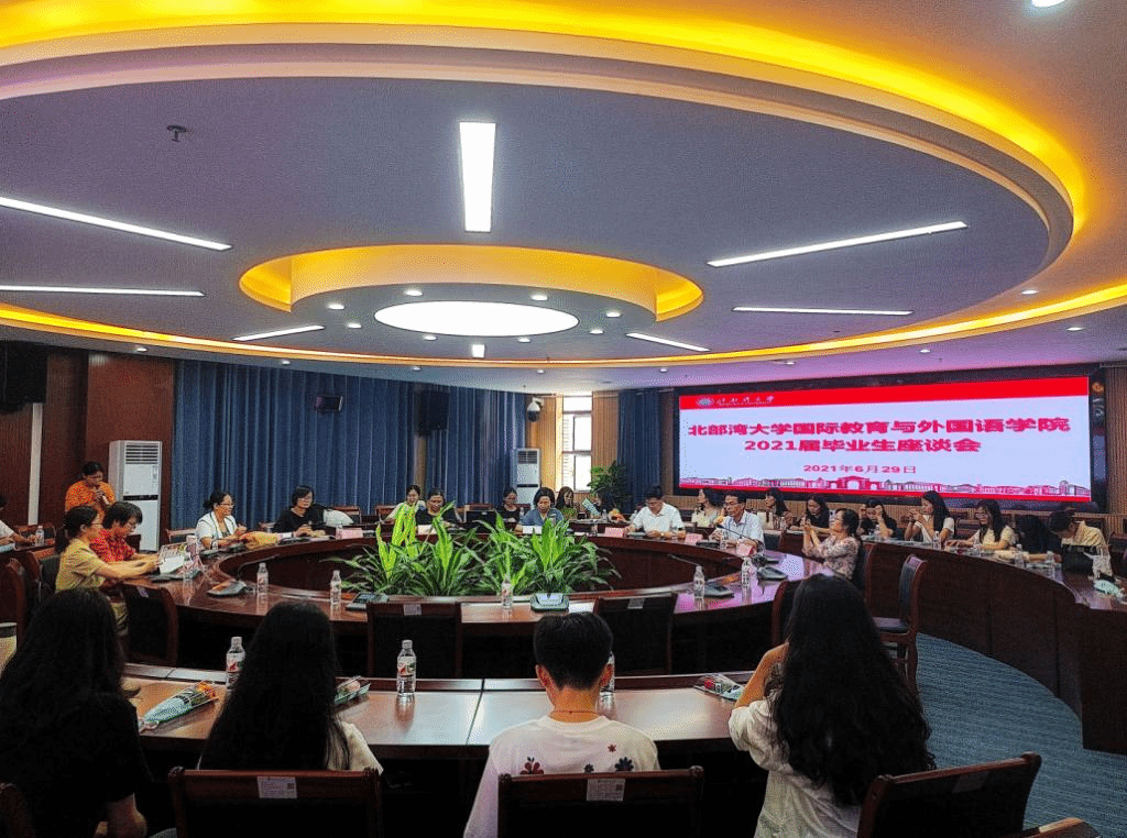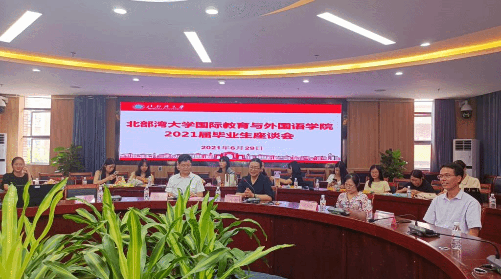 6月29日下午,我院在国际教育与外国语学院222会议室召开2021届毕业生座谈会。我院党总支书记史忠丰、院长冯丽、党总支副书记伍红艺、副院长潘景丽、刘卫玲、蔡成龙,辅导员蓝水萍,教师代表赵亚丽、林澜、王珊等老师及毕业生出席座谈会。