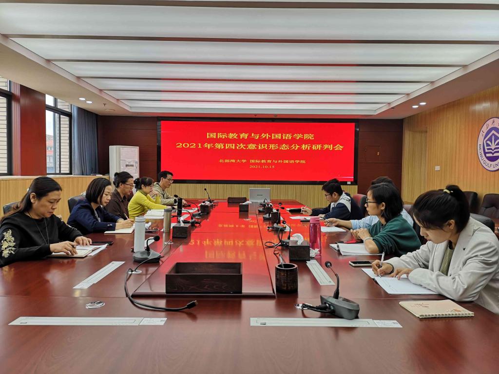 2021年10月15日上午,在国外院346会议室召开我院2021年第四次意识形态工作分析研判会,学院全体领导、全体科级别干部等相关人员参加会议。会议由学院我学院院长冯丽主持。