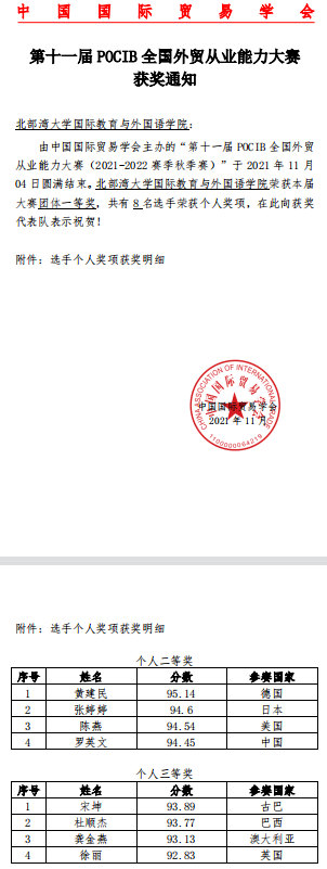 2021年10月21日10:00,第11届POCIB全国外贸从业能力大赛正式拉开帷幕。国际教育与外国语学院英语专业19级及英语专升本21级的刘西西等10位同学组成的比赛队伍带着紧张与期待的心情,犹如打开盲盒般登录比赛系统开始了为期15天的比赛。在林剑萍,陈小冰和陈茜三位指导老师与学长学姐不辞辛苦的指导和鼓励下,参赛的同学们逐渐掌握了比赛规则,对比赛系统的操作熟练程度与准确率得到极大的提高,团队的比赛成绩和排名也在一路上升。