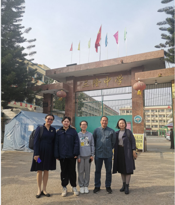 据悉,我院英语专升本201班的颜如玉、唐佳华同学将在三隆中学开展为期三个月的实习工作。冯丽院长、伍副书记对她们进行了亲切问候,了解了她们的工作、生活及适应情况。学生深受感动,感谢学院的牵挂和关心。之后,冯丽院长、伍副书记及蓝水萍老师与三隆中学校长唐尚长、教导处副主任潘晓琴和宁志杰老师进行座谈。双方围绕三隆中学英语教师需求、我院英语专业学生工作、英语教材使用等情况与进行了交流和探讨。此外,我院向三隆中学领导老师发放了人才培养方案及人才培养质量调查问卷,真诚听取他们对我校人才培养方案的意见和建议。唐校长表示,目前三隆中学大部分英语教师都是毕业于北部湾大学前身师专、钦州学院的,他表示,英语教师工作能力强、专业技能过硬,为三隆中学教学管理工作做出了贡献。教导处副主任潘晓琴和宁志杰认为我院英语专业毕业生英语基础扎实,课堂驾驭能力强,教态亲切自然,深受学生欢迎。