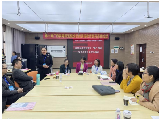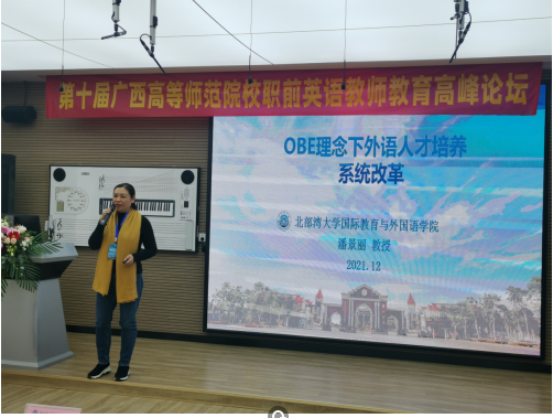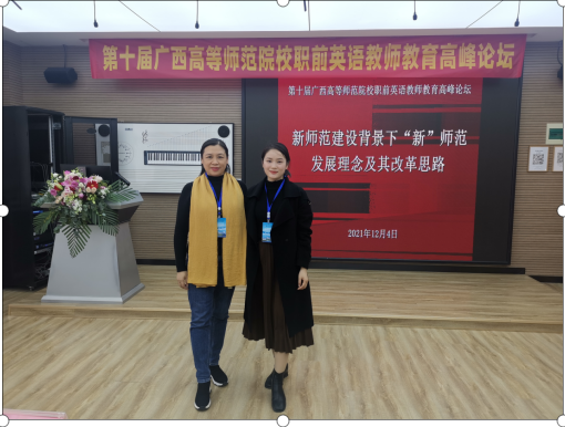 由自治区本科高校英语教学指导委员会主办、桂林师范高等专科学院承办的第十届广西高等师范院校职前英语教师教育高峰论坛于2021年12月3日至5日在桂林市举行。来自全区十三所高校的领导、骨干教师和一线基础教育专家齐聚高峰论坛,探讨新师范建设背景下新师范发展理念及其改革思路。我院副院长潘景丽教授、郭可莹老师参会。