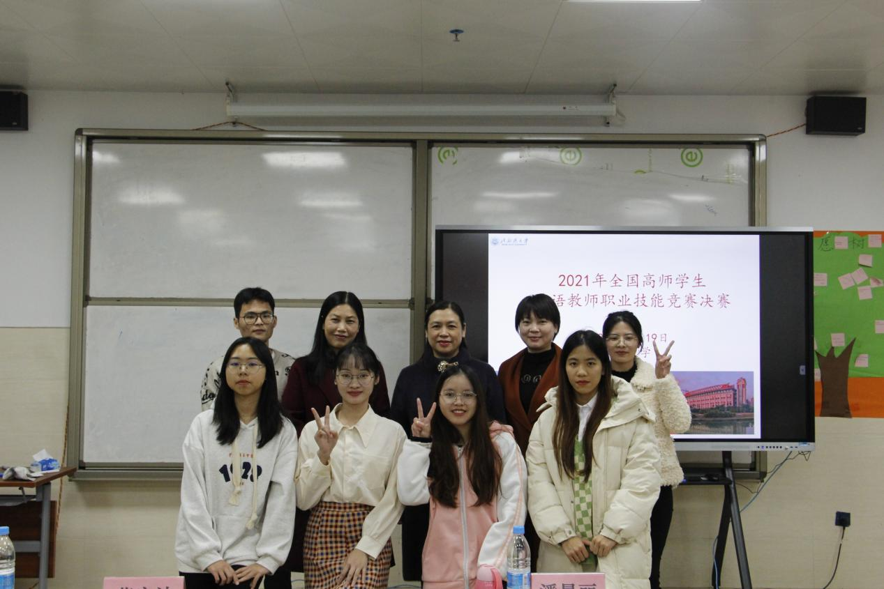 2021年12月19日,2021年全国高师学生英语教师职业技能竞赛决赛在北部湾大学国际交流中心举行。竞赛由全国高等师范院校外语教学与研究协作组与国际英语外语教师协会中国英语外语教师协会联合举办,分初赛和决赛两个阶段。我院精心组织和指导57名学生参加了11月下旬的初赛并全部获得合格证书,其中6位选手经选拔成功进入决赛。决赛采取微型教学加答辩的方式进行,潘景丽副院长、蒙宏洁老师、邓晓明老师担任了决赛的评委。