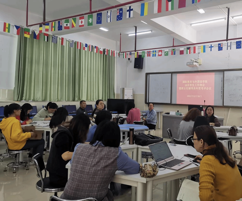 12月16日12:00,我院在国际交流中心219召开12月学生工作例会暨班主任辅导员考评会。参会人员有学院党总支副书记伍红艺、专兼职辅导员及全体班主任。
