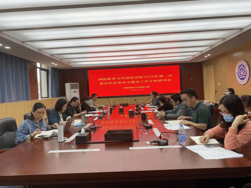 为学习和贯彻学校意识形态精神,压实压紧各单位部门的意识形态工作主体责任,不断加强和改进意识形态和安全稳定工作,4月22日上午,国际教育与外国语学院党委在国际教育与外国语学院346室召开2022年第一次意识形态和安全稳定工作分析研判会。