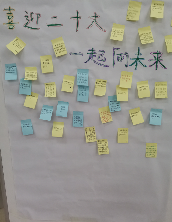 最后,蓝水萍老师为受助学生发放了笔记本等学习用品。到场的同学在“喜迎二十大,一起向未来”的展板上,写下了自己想对祖国说的话,表达自己对祖国的感恩和祝福。