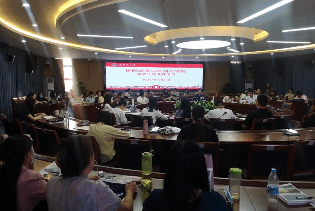 为了进一步推进我学院统战工作的开展,切实增加教师党员们的廉洁意识,营造风清气正的廉洁从教氛围,2022年9月5日下午,我院于国外院222会议室组织了关于《新时代高校教师职业行为十项准则》的学习会,学习会议由党委副书记伍红艺主持。