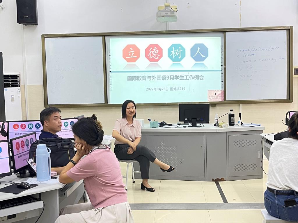 9月26日下午,我院学工例会在国外院219召开。学院党委书记黎树式、副书记伍红艺、全体专兼职辅导员、班主任出席了本次会议。会议由学工办主任蓝水萍主持。