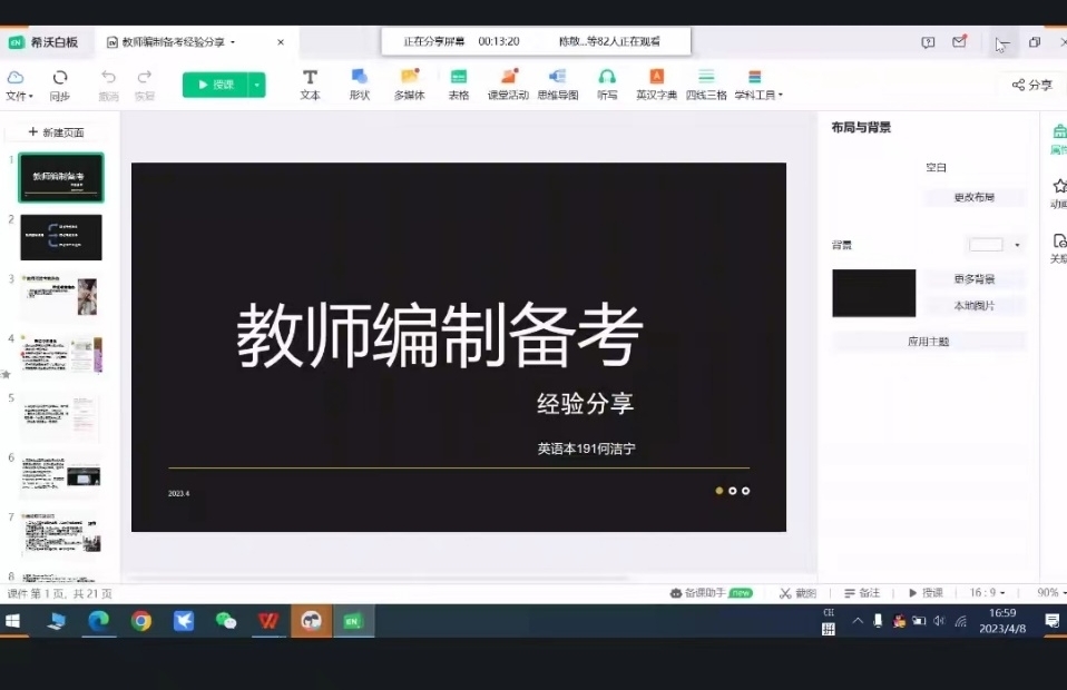 2023年4月8日,国际教育与外国语学院于线上平台顺利开展“职”面未来:2023届毕业生就业经验分享会(三)。本次分享会主题为教师招聘经验分享,主讲人为英语本191班何洁宁、田玉婷,英语专升本221班蒋素云。我院张弘老师和约70名毕业生参加本次会议。
