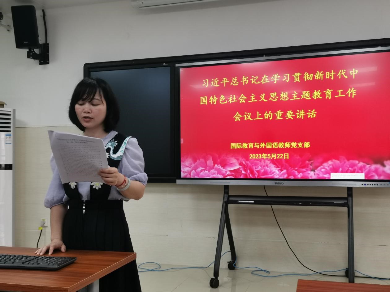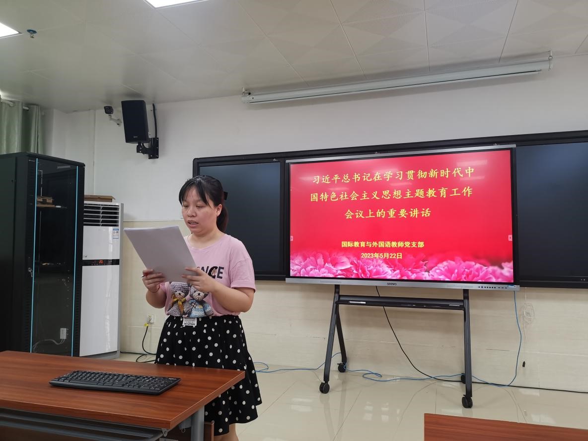 5月22日下午,国际教育与外国语学院教师党支部在学院217室党员活动室进行五月份的支部学习活动。本次学习由党支部第6小组的党员教师带领全体教师党员学习了5份文件。
