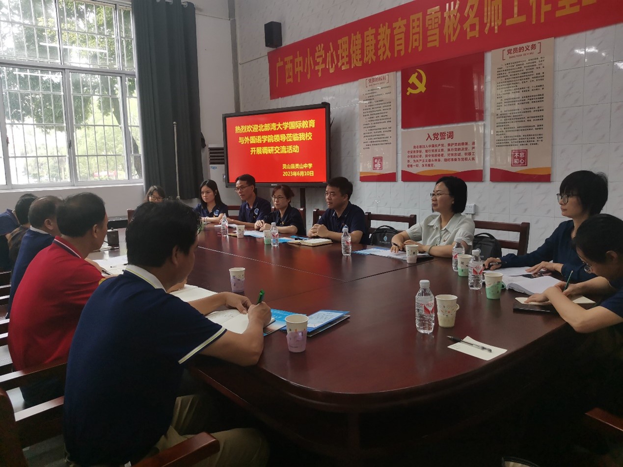 为深入学习贯彻习近平新时代中国特色社会主义思想,扎实推进主题教育,6月10日,学院教师党支部组织党员同志赴灵山中学开展主题党日活动。灵山中学校长简信基、学院党委书记黎树式、党委副书记伍红艺、副院长刘卫玲、副院长蔡成龙及双方党员代表参加座谈会。