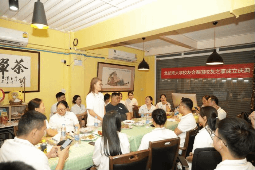 正值北部湾大学建校50周年暨师范教育办学117周年之际,9月17日下午,在泰国工作、学习的四十多位“湾大人”相聚曼谷,共同迎接一个重要时刻的到来——北部湾大学校友会泰国校友之家揭牌仪式。这是北部湾大学在海外成立的第一个校友之家。当天下午,异国遇故友的湾大人们热情地问候、拥抱,他们互诉着校园往事,聊聊近来的工作生活,湾大人独有的归属感迅速拉近了校友们的距离,每一个人脸上都洋溢着幸福的笑容。他们将来自母校“校庆50周年”的纪念衫穿在身上,将母校赠与的北部湾大学校徽别在胸前……所有的珍视与郑重无不表达着他们内心的喜悦与兴奋——这份绵延千里的校友情谊终于在海外有了属于自己的“家”。揭牌仪式上,校友们听取了北部湾大学校友会泰国校友之家筹备工作组总召集人王大为介绍的筹备工作情况,审议并通过了《北部湾大学校友会泰国校友之家管理办法(试行)》草案,选举出了北部湾大学校友会泰国校友之家召集人及秘书长。随后,该校纪委副书记姚敏、石油与化工学院党委书记黄瑜与北部湾大学校友会泰国校友之家总召集人王大为、秘书长陈观康共同为 “北部湾大学校友会泰国校友之家” 揭牌。