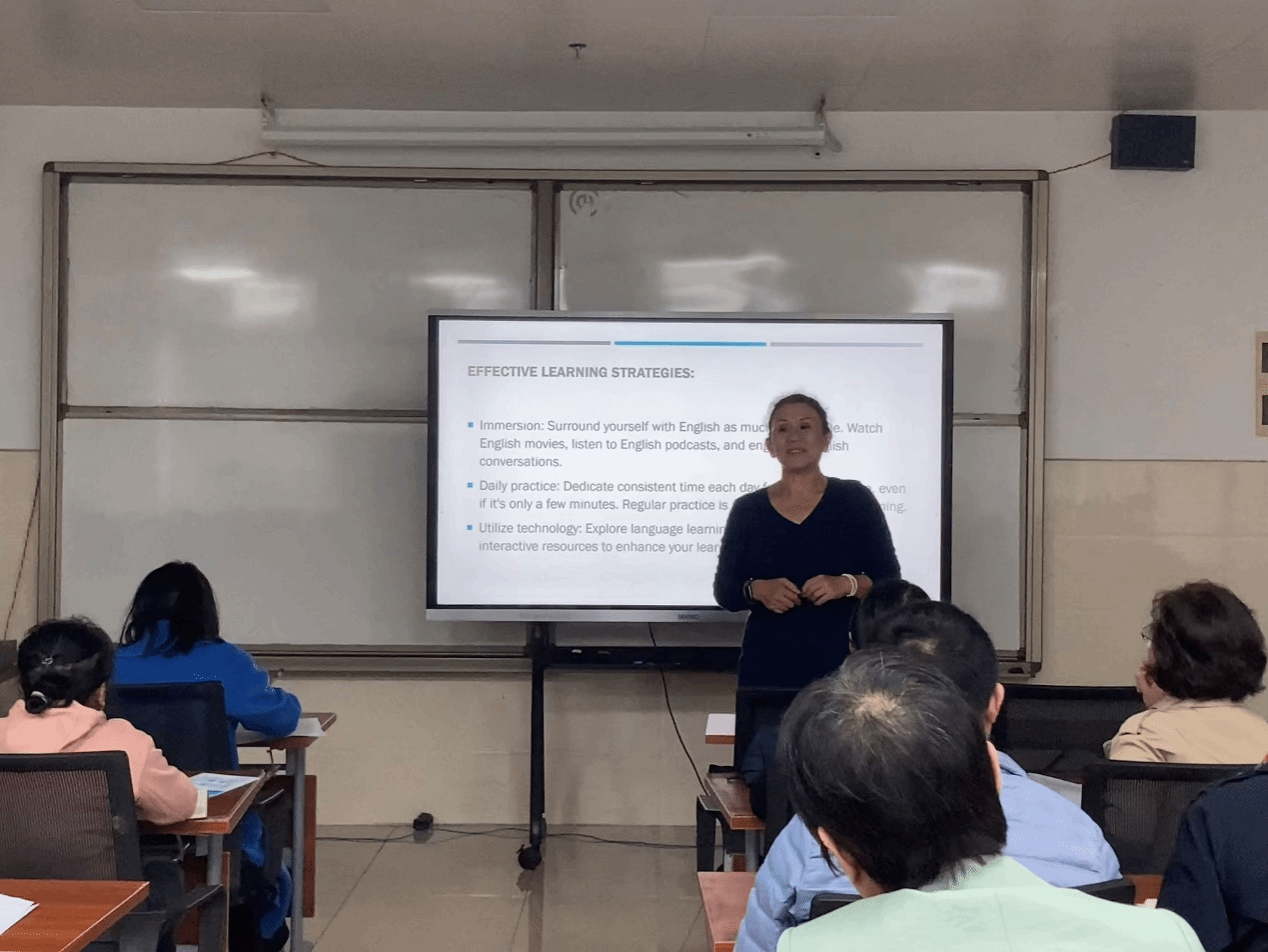 国交处处长冯丽充分肯定并感谢Selina老师长期以来为推动我校师生英语教学做出的努力。冯丽处长鼓励学员们今后加强双语教学的探索和实践,增强国际化意识,更好地服务于学校的国际化发展。