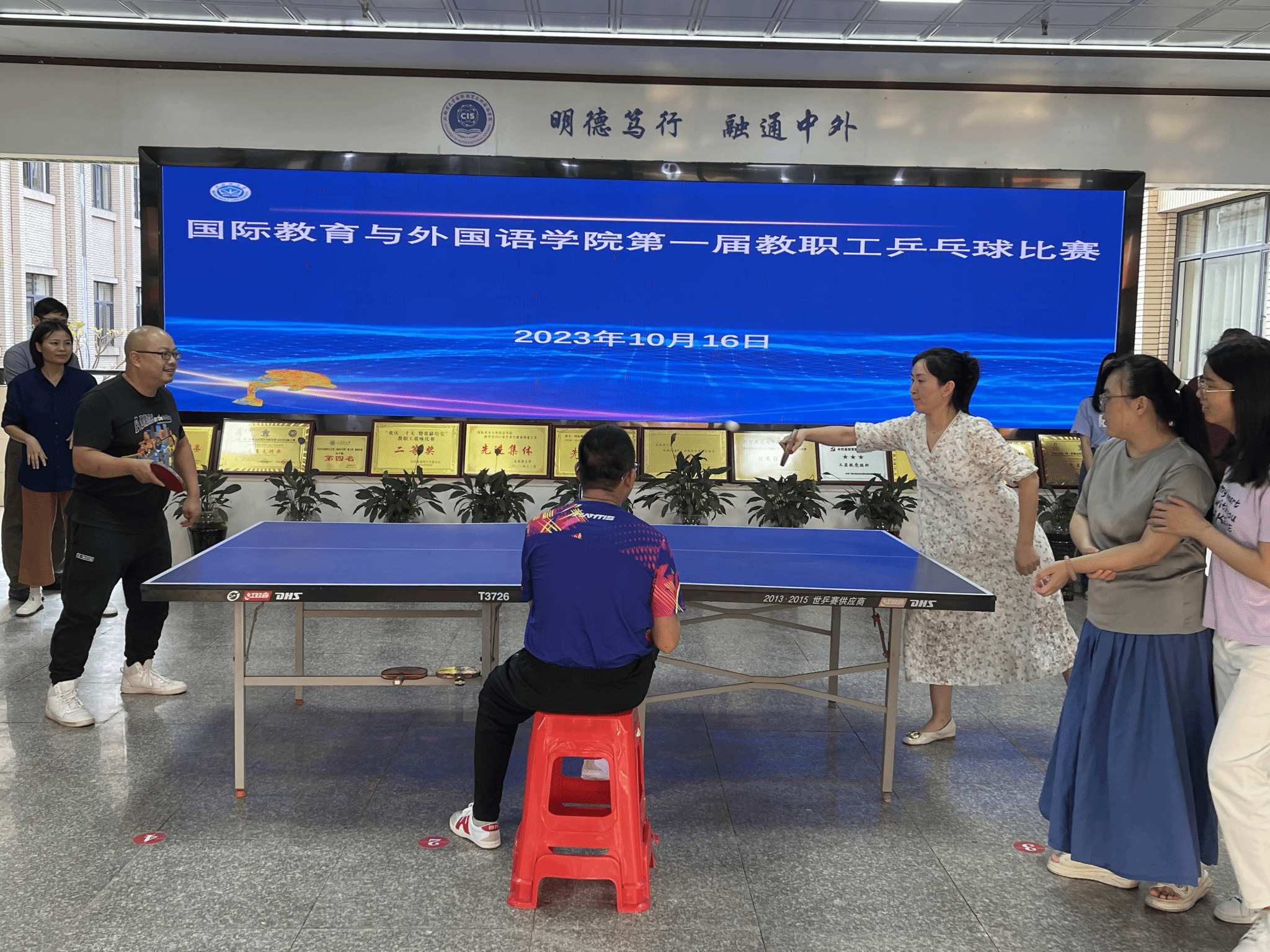 为激励我院教职工踔厉奋发、勇毅前行,丰富教职工的校园文化生活,促进身心健康,2023年10月17日下午,国际教育与外国语学院第一届教职工乒乓球比赛在学院一楼大厅举行。